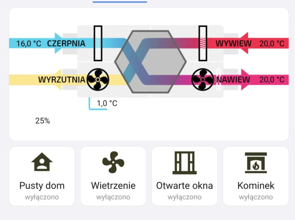 Smart Home umożliwia również monitorowanie stanu powietrza wewnątrz budynku, co pozwala szybko reagować na ewentualne nieprawidłowości. W połączeniu z czujnikiem jakości powietrza dba o zdrowie domowników. Taką wentylację można rozbudować o gruntowy wymiennik ciepła (GWC) z linią kroplującą, co pozwoli zwiększyć jej sprawność oraz umożliwi sterowanie wilgotnością w Twoim domu – w szczególności zimą, kiedy poziom ten spada do ok. 10-30%. Dodatkowo atutem inteligentnego domu może być łatwe dostosowanie parametrów mechanicznej wentylacji do indywidualnych potrzeb użytkowników, co pozwala jeszcze lepiej wykorzystać rekuperację.